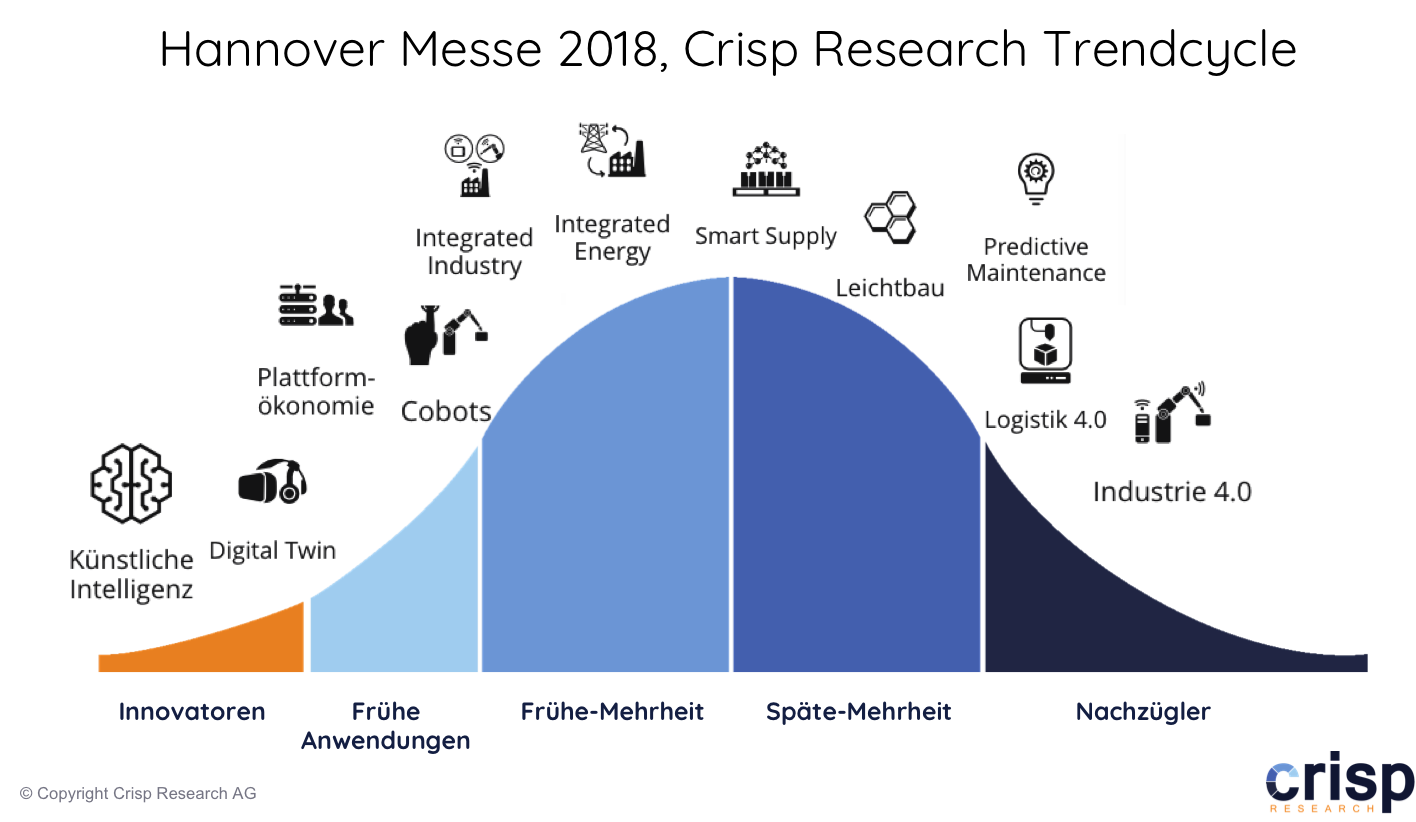Hannover Messe 2018, Die Trends mit ihren Reifegraden, Quelle: Crisp Research
