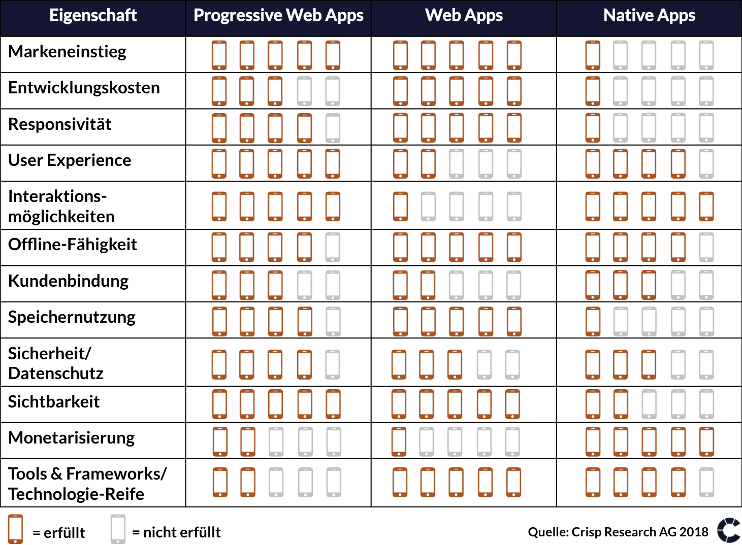 - In Entwicklerkreisen und bei einigen Early-Adopter-Unternehmen sind Progressive Web Apps (“Hybride” Apps aus Web- und Native-App) schon bekannt – jetzt stehen sie unmittelbar vor dem großen Durchbruch in der Mobile-App-Entwicklung der Unternehmen