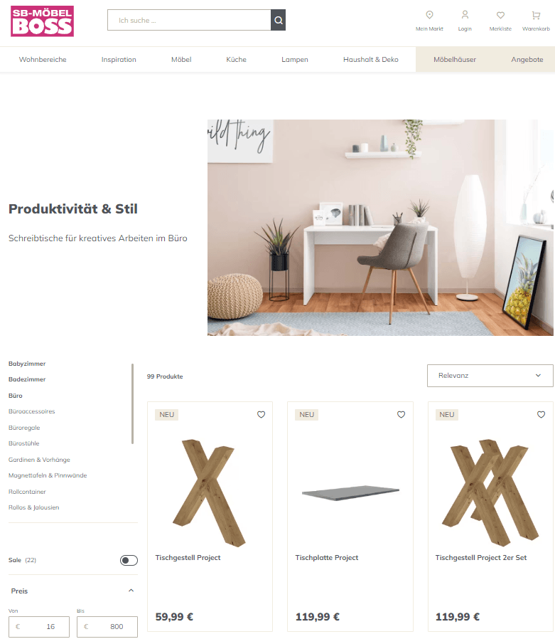 Das Ziel der Zusammenarbeit war die Effizienzsteigerung sowie die Anpassung der Architektur der E-Commerce-Plattform. Als Betreiber einer Plattform mit SAP Commerce Cloud im Backend, war Möbel Boss auf der Suche nach der optimalen Front-End-Lösung speziell für ihre Bedürfnisse. SAP Composable Storefront (ehemals SAP Spartacus) erfüllte alle Anforderungen und ermöglichte es uns, die Performance des Online-Shops deutlich zu verbessern.