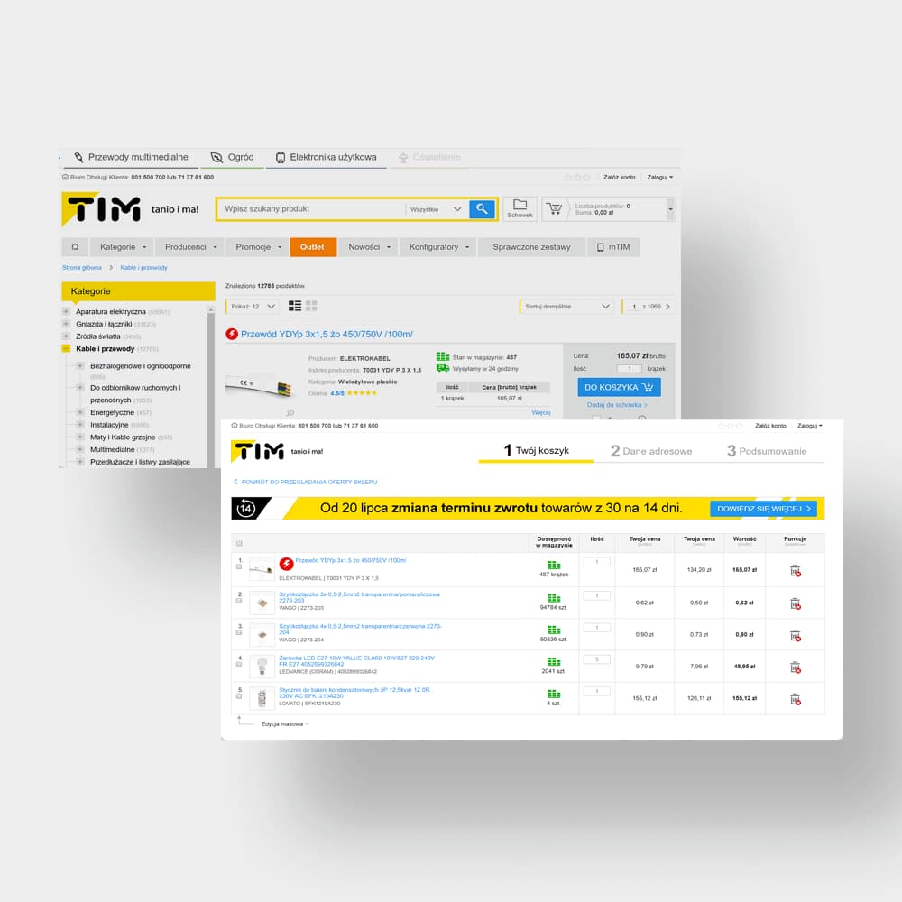 We started cooperating in 2011. First, we created a niche webshop with cables for B2C customers. In doing so, we were looking for the answers to two questions: can TIM sell online in the context of product range, logistics, and customer support, and can we acquire new customer groups?