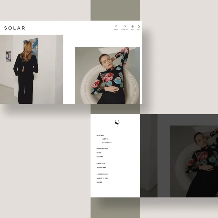 Solar powstał w 1989 roku, co czyni go jedną z pierwszych marek odzieży damskiej w Polsce. Solar zarządza siecią ponad 63 własnych sklepów, 14 punktów franczyzowych i 49 sklepów partnerskich. Współpracują też z 11 partnerami z zagranicy i mają 1 punkt franczyzowy w Niemczech. Wyróżnia ich na tle konkurencji wysoka jakość materiałów, bogate kolory i charakterystyczne nadruki. Przyszli do nas z prośbą o redesign strony, aby odświeżyć obecność na rynku i osiągnąć nowe cele biznesowe.